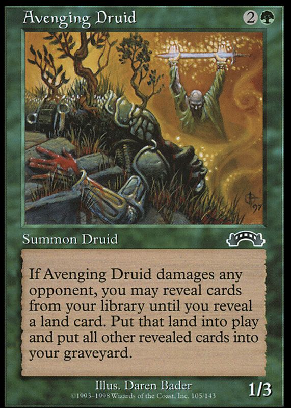The Avenging Druid 1998 Exodus #105 Base card in Raw TCG (Near Mint) condition has not changed in price in the last 30 days and was last sold for $0.99 .