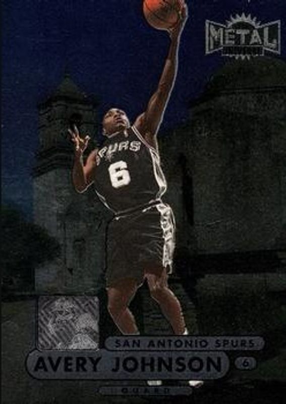 The Avery Johnson 1997 Metal Universe Championship #10 Base card is 1 of 2 Avery Johnson's card variations in the 1997 Metal Universe Championship set being tracked by Sports Card Investor, including Precious Metal Gems /50.