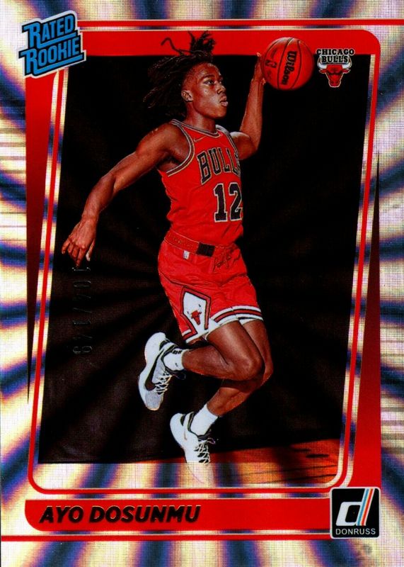 The Ayo Dosunmu 2021 Donruss #221 Holo Laser /149 Rookie card in Raw condition has not changed in price in the last 30 days and was last sold for $8.50 .