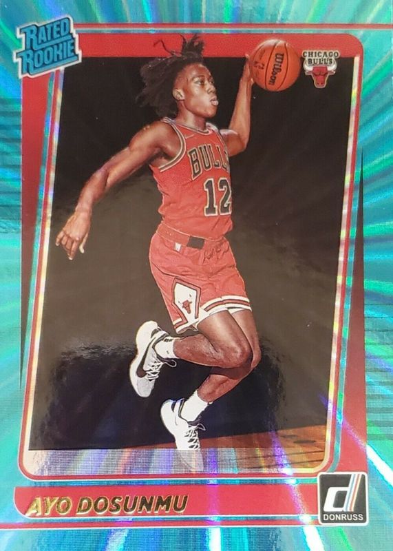 The Ayo Dosunmu 2021 Donruss #221 Teal Laser Rookie card in Raw condition has moved down -$0.66 (-39.8%) in the last 30 days and was last sold for $0.99 .