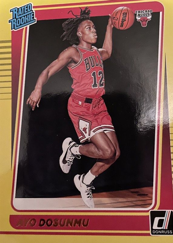The Ayo Dosunmu 2021 Donruss #221 Yellow Flood Rookie card in Raw condition has not changed in price in the last 30 days and was last sold for $0.99 .