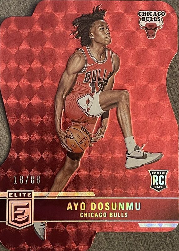 This card is 1 of 16 Ayo Dosunmu's card variations in the 2021 Elite set being tracked by Sports Card Investor, including Base Rookie /999, Asia Exclusive, Asia Hyper Gold, Asia Hyper Red, and Status (/12).