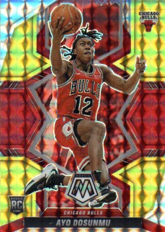 2021-22 Panini Mosaic Ayo Dosunmu #233 Red Yellow Fusion /88 Rookie - Bulls
