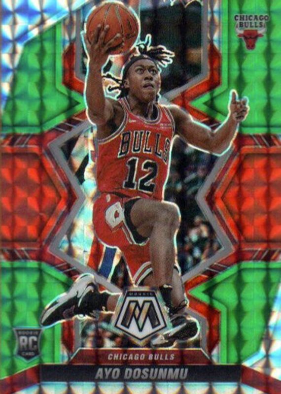 The Ayo Dosunmu 2021 Mosaic #233 Choice Red & Green Rookie card in Raw condition has not changed in price in the last 30 days and was last sold for $2.49 .