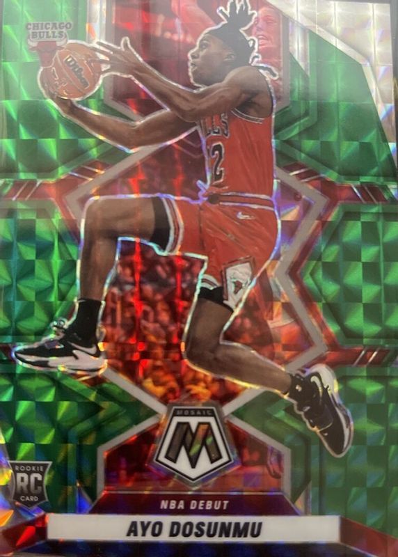 2021-22 Panini Mosaic Ayo Dosunmu NBA Debut Green PRIZM Rookie #279 RC Bulls