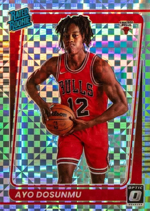 The Ayo Dosunmu 2021 Optic #171 Checkerboard Rookie card in Raw condition has not changed in price in the last 30 days and was last sold for $16.50 .