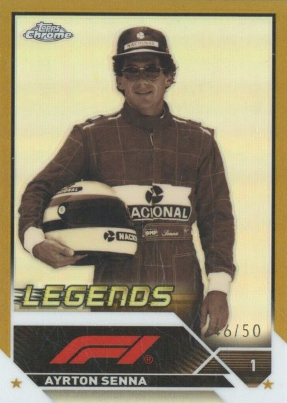 2023 AYRTON SENNA TOPPS CHROME FORMULA 1 F1 #198 LEGENDS GOLD REFRACTOR 46/50!!