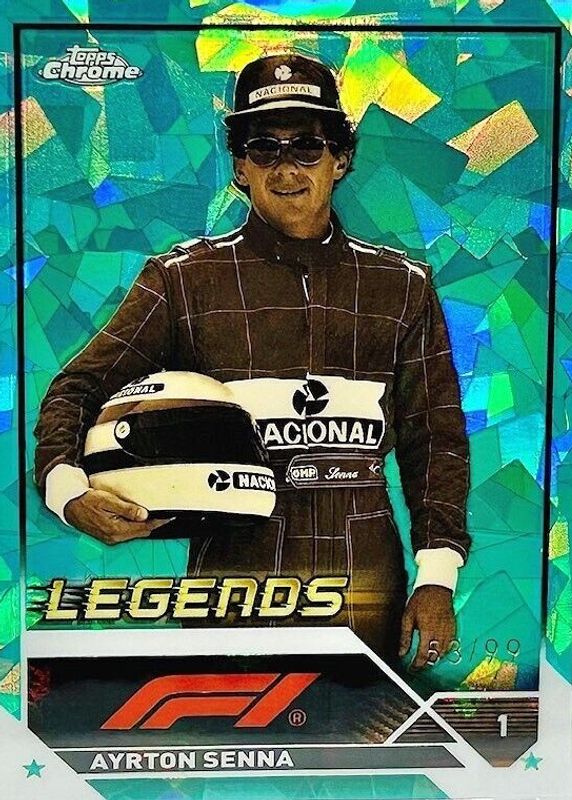 2023 Topps Chrome Sapphire Formula 1 F1 Ayrton Senna Legends Aqua 47/99 #198