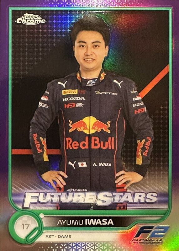 This card is 1 of 35 Ayumu Iwasa's card variations in the 2022 Topps Chrome Formula 1 set being tracked by Sports Card Investor, including Base, Black & White RayWave Refractor, Checker Flag Refractor, Gold & Purple Refractor, and Orange & Red Refractor.
