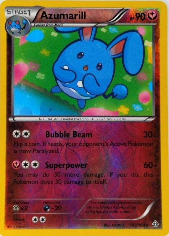 The Azumarill 2015 XY: Primal Clash #103/160 Reverse Holo card in Raw TCG (Lightly Played) condition has moved up $0.69 (+46.0%) in the last 30 days and was last sold for $2.19 .