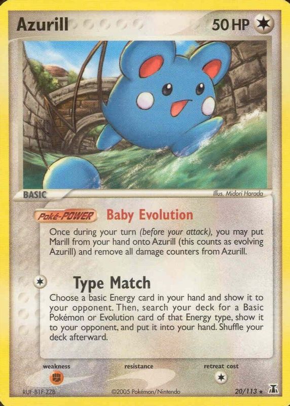 The Azurill 2005 EX: Delta Species #020/113 Base card in Raw TCG (Near Mint) condition has moved down -$0.34 (-4.3%) in the last 30 days and was last sold for $7.61 .