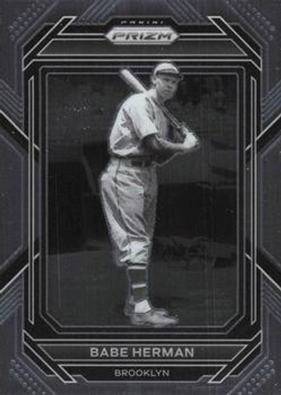 The Babe Herman 2023 Prizm #221 Base card is 1 of 26 Babe Herman's card variations in the 2023 Prizm set being tracked by Sports Card Investor, including Blue Ice, Giraffe, Green Ice, Hyper, and Ice.
