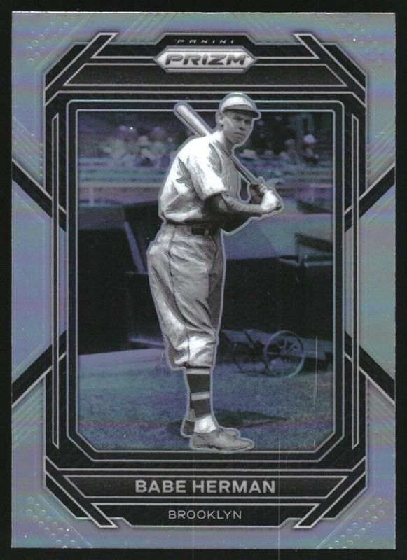 The Babe Herman 2023 Prizm #221 Silver card is 1 of 26 Babe Herman's card variations in the 2023 Prizm set being tracked by Sports Card Investor, including Base, Blue Ice, Giraffe, Green Ice, and Hyper.