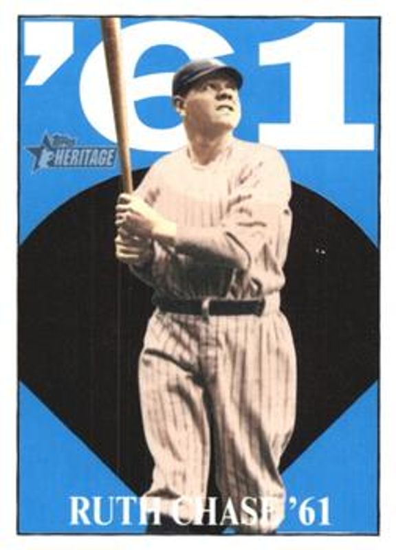 The Babe Ruth 2010 Topps Heritage #61BR13 Ruth Chase '61 card is 1 of 33 Babe Ruth's card variations in the 2010 Topps Heritage set being tracked by Sports Card Investor, including #401 Base, #60b Base, #401 50th Anniversary Buybacks, #61BR1 Ruth Chase '61, and #61BR10 Ruth Chase '61.