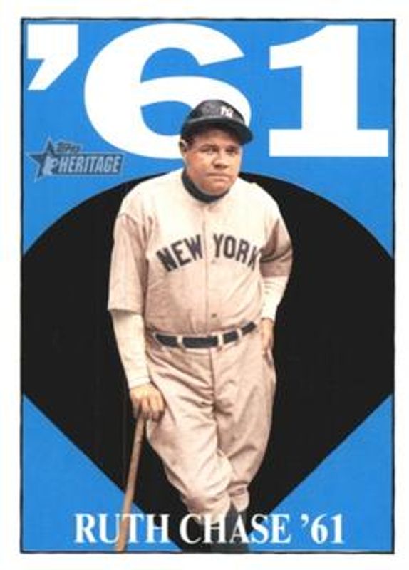 The Babe Ruth 2010 Topps Heritage #61BR6 Ruth Chase '61 card is 1 of 33 Babe Ruth's card variations in the 2010 Topps Heritage set being tracked by Sports Card Investor, including #401 Base, #60b Base, #401 50th Anniversary Buybacks, #61BR1 Ruth Chase '61, and #61BR10 Ruth Chase '61.