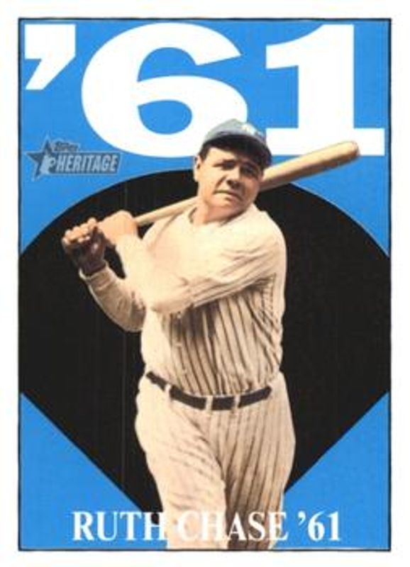The Babe Ruth 2010 Topps Heritage #61BR8 Ruth Chase '61 card is 1 of 33 Babe Ruth's card variations in the 2010 Topps Heritage set being tracked by Sports Card Investor, including #401 Base, #60b Base, #401 50th Anniversary Buybacks, #61BR1 Ruth Chase '61, and #61BR10 Ruth Chase '61.