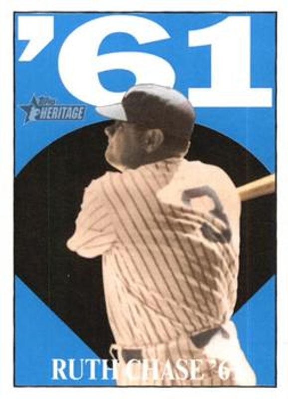 The Babe Ruth 2010 Topps Heritage #61BR9 Ruth Chase '61 card is 1 of 33 Babe Ruth's card variations in the 2010 Topps Heritage set being tracked by Sports Card Investor, including #401 Base, #60b Base, #401 50th Anniversary Buybacks, #61BR1 Ruth Chase '61, and #61BR10 Ruth Chase '61.