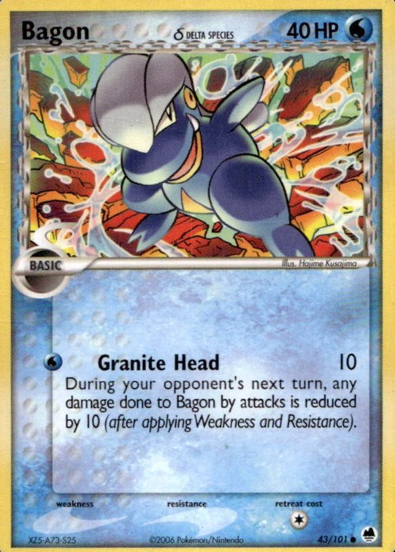 The Bagon 2006 EX: Dragon Frontiers #043/101 Base card in Raw TCG (Lightly Played) condition has moved down -$8.73 (-87.4%) in the last 30 days and was last sold for $1.26 .