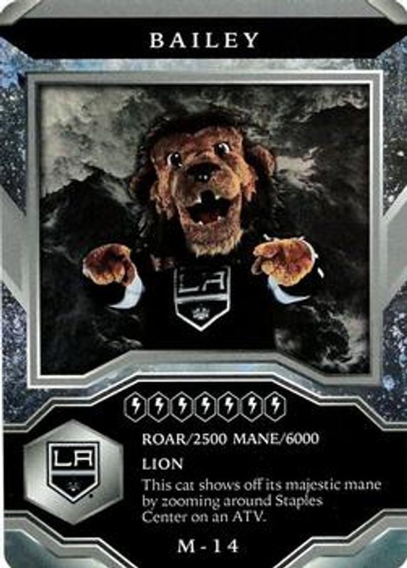 The Bailey 2021 Upper Deck MVP #M-14 Mascots Gaming card is 1 of 6 Bailey's card variations in the 2021 Upper Deck MVP set being tracked by Sports Card Investor, including Mascots Gaming Sparkle, Mascot Gaming - Printing Plates Black /1, Mascot Gaming - Printing Plates Cyan /1, Mascot Gaming - Printing Plates Magenta /1, and Mascot Gaming - Printing Plates Yellow /1.