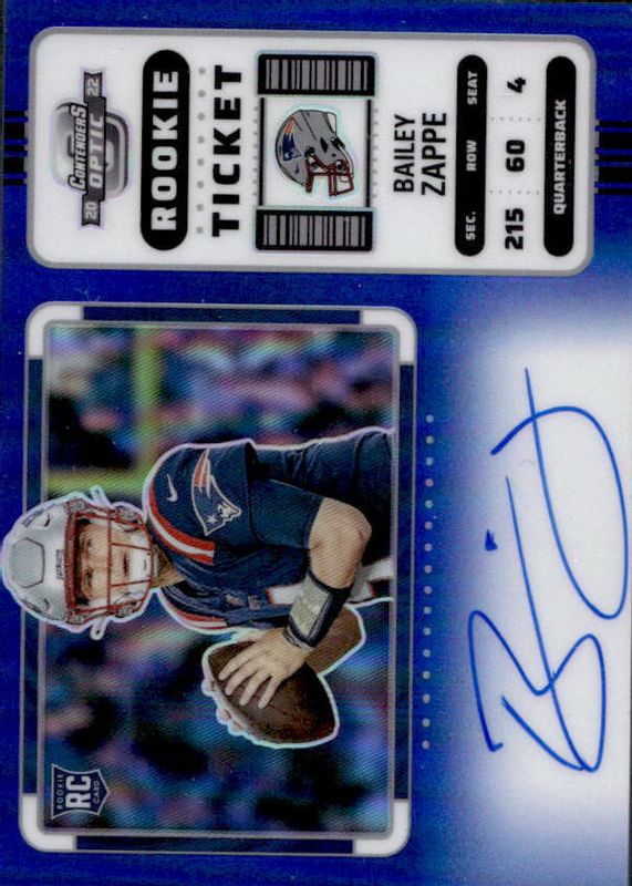 Bailey Zappe 2022 Contenders Optic #104 Rookie Ticket Auto Variation - Blue /25 BGS 9 Price Guide