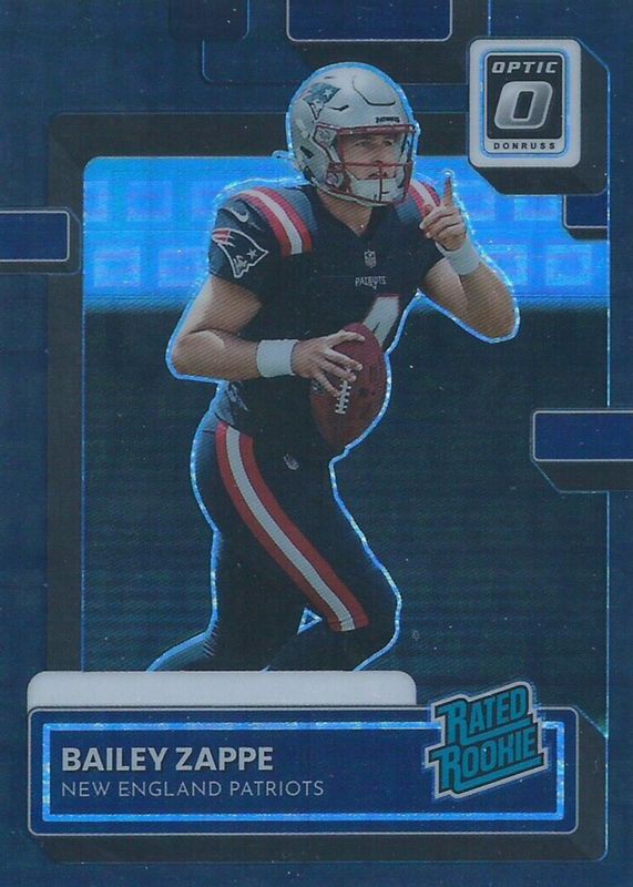 The Bailey Zappe 2022 Donruss #P-329 Optic Preview - Black Pandora /25 Rookie card in Raw condition has not changed in price in the last 30 days and was last sold for $6.75 .