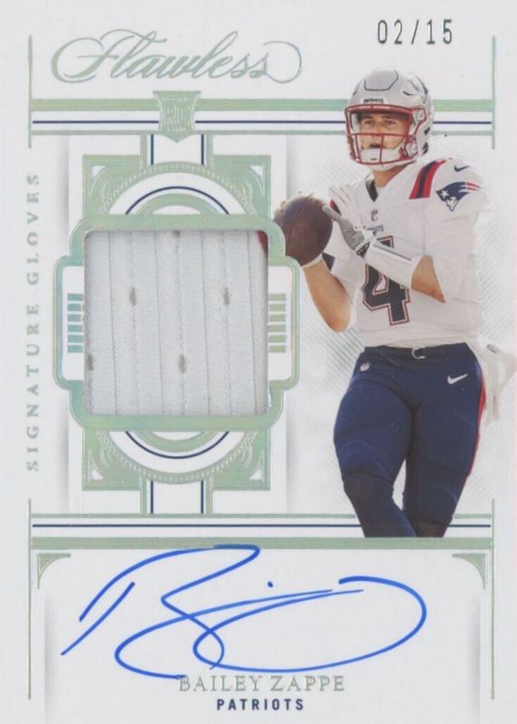 2022 Panini Flawless Football RC Signature Gloves Auto Silver Bailey Zappe 02/15