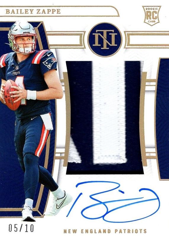 Auctions Ending Soon for Bailey Zappe 2022 National Treasures #195 Rookie Patch Auto - Holo Gold /10 RAW