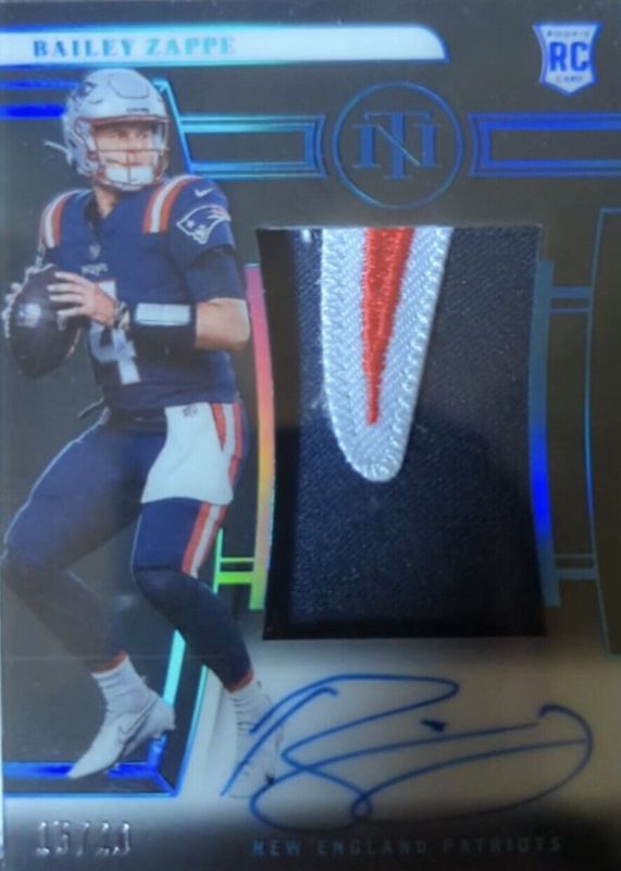 Auctions Ending Soon for Bailey Zappe 2022 National Treasures #195 Rookie Patch Auto - Midnight /20 RAW