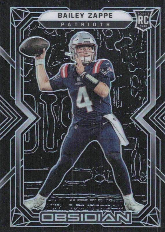 The Bailey Zappe 2022 Obsidian #141 Base Rookie card in Raw condition has not changed in price in the last 30 days and was last sold for $10.99 .