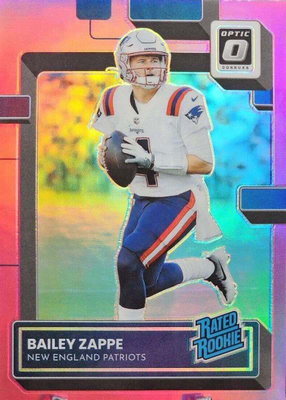 2022 Donruss Optic Pink Prizm #229 Bailey Zappe Patriots RC Rated Rookie