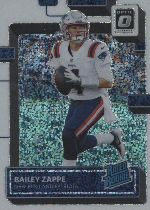 Auctions Ending Soon for Bailey Zappe 2022 Optic #229 White Sparkle /(SSP) Rookie RAW