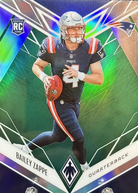 This card is 1 of 27 Bailey Zappe's card variations in the 2022 Phoenix set being tracked by Sports Card Investor, including Base, Color Burst, Onyx (/5), Red Mojo (/10), and Silver.