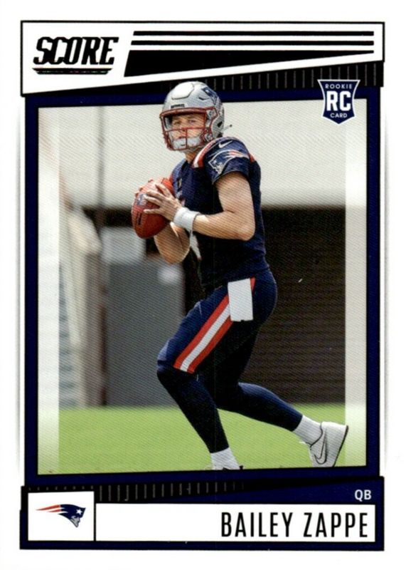 This card is 1 of 2 Bailey Zappe's card variations in the 2022 Score set being tracked by Sports Card Investor, including Rookie Signatures.