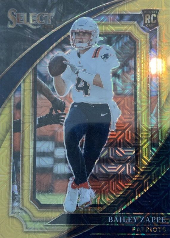 Auctions Ending Soon for Bailey Zappe 2022 Select #318 Suite Level Gold /10 Rookie RAW