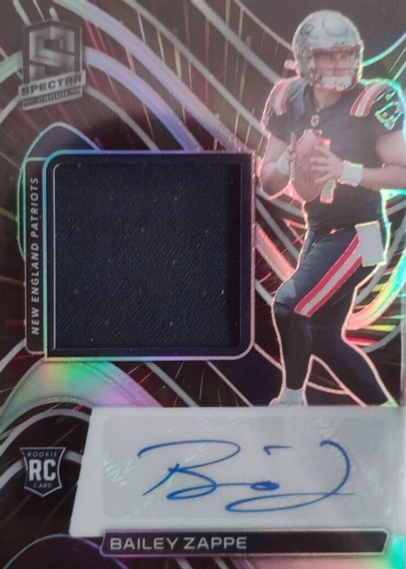 Auctions Ending Soon for Bailey Zappe 2022 Spectra #239 Rookie Patch Auto - Hyper /75 RAW