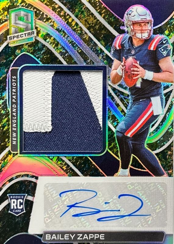 Auctions Ending Soon for Bailey Zappe 2022 Spectra #239 Rookie Patch Auto - Neon Splatter /8 RAW