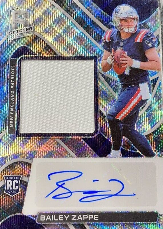 Auctions Ending Soon for Bailey Zappe 2022 Spectra #239 Rookie Patch Auto - Wave /25 RAW