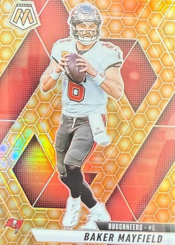 Baker Mayfield's Football cards are available in at least 88 sets. Baker Mayfield's biggest 7-day price movers are 2018 Donruss #R-3 The Rookies, 2018 Prizm #PP-1 Premier Jerseys, and 2025 Mosaic #23 Visionary /(SSP).