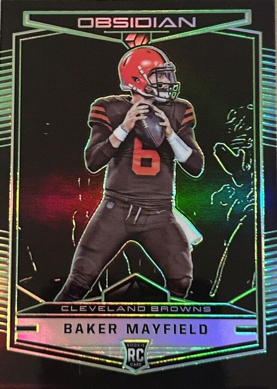 The Baker Mayfield 2018 Obsidian #103 Electric Etch Green /25 Rookie card in Raw condition has not changed in price in the last 30 days and was last sold for $43.00 .
