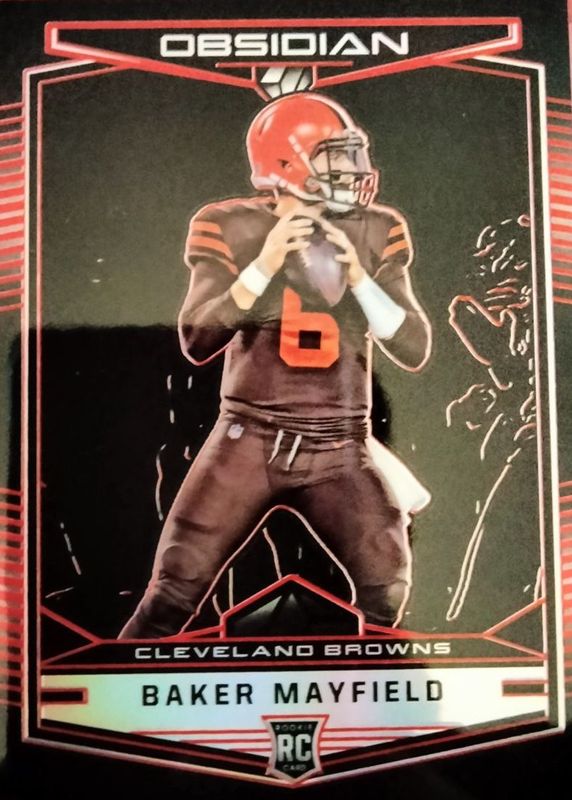 The Baker Mayfield 2018 Obsidian #103 Electric Etch Red /5 Rookie card in Raw condition has not changed in price in the last 30 days and was last sold for $118.50 .