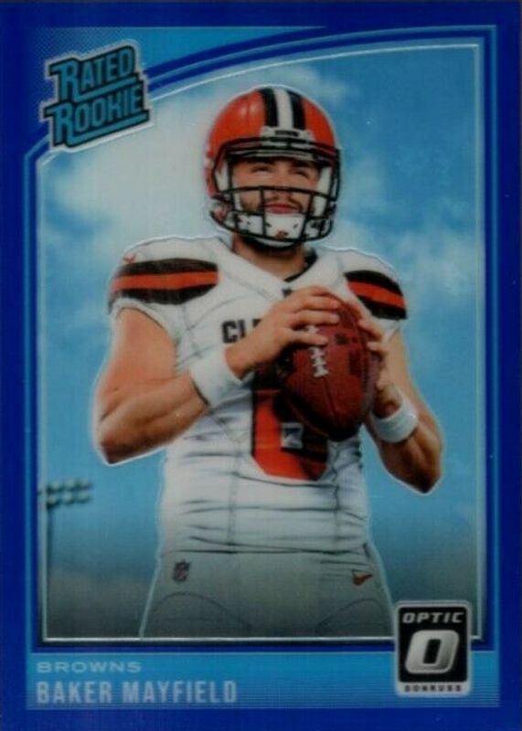2018 Donruss Optic - Rated Rookie Baker Mayfield #153 Blue Prizm /149 (RC)
