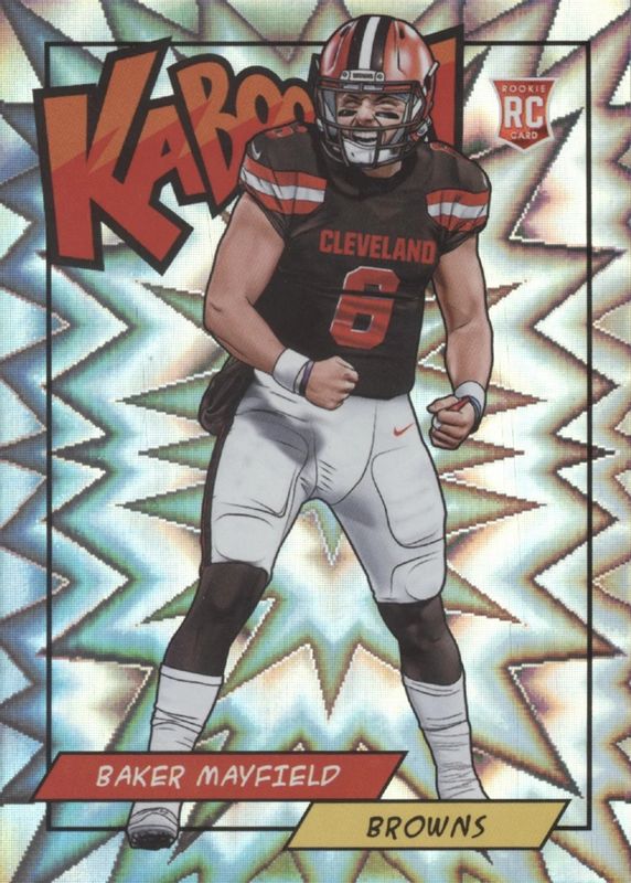The Baker Mayfield 2018 Panini Rewards #K-BM Kaboom! /(SSP) Rookie card in Raw condition has not changed in price in the last 30 days and was last sold for $484.00 .