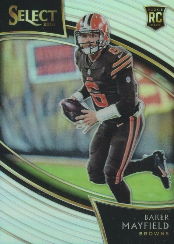This card is 1 of 91 Baker Mayfield's card variations in the 2018 Select set being tracked by Sports Card Investor, including Concourse, Field Level, Premier Level, Concourse Silver, and Premier Level Silver.