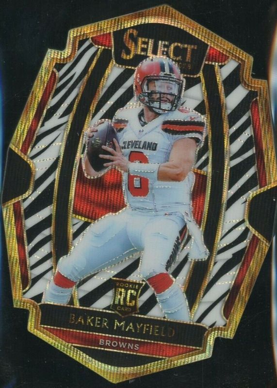 Best Prices Available For Sale of Baker Mayfield 2018 Select #143 Premier Level Zebra Die-Cut /(SSP)