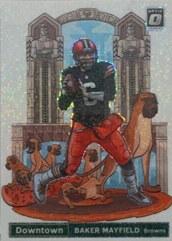This card is 1 of 17 Baker Mayfield's card variations in the 2021 Optic set being tracked by Sports Card Investor, including Legendary Logos, My House!, Downtown /(SSP), Downtown - Black Pandora /25, and Legendary Logos - Black Pandora /25.