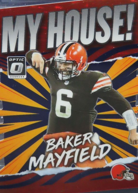 The Baker Mayfield 2021 Optic #MH-10 My House! - Purple Stars /25 card in Raw condition has not changed in price in the last 30 days and was last sold for $8.94 .