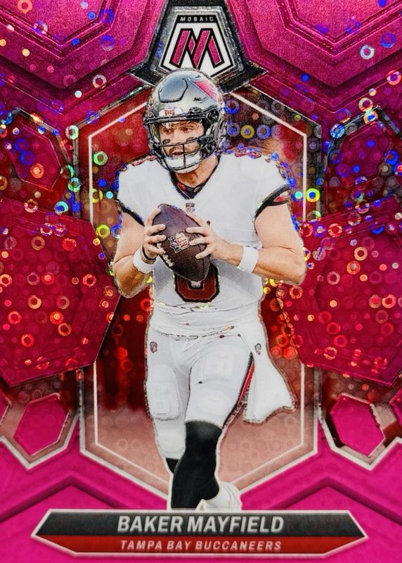 This card is 1 of 24 Baker Mayfield's card variations in the 2024 Mosaic set being tracked by Sports Card Investor, including Choice Peacock /(SSP), Genesis /(SSP), Honeycomb /(SSP), Red Sparkle /(SSP), and White Sparkle /(SSP).