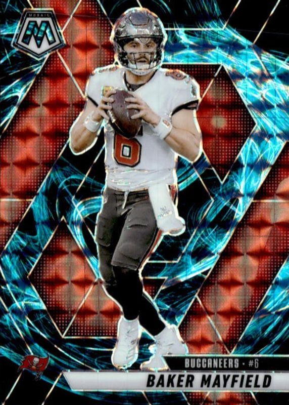 The Baker Mayfield 2025 Mosaic #82 Genesis /(SSP) card in Raw condition has moved up $30.96 (+221%) in the last 30 days and was last sold for $45.00 .