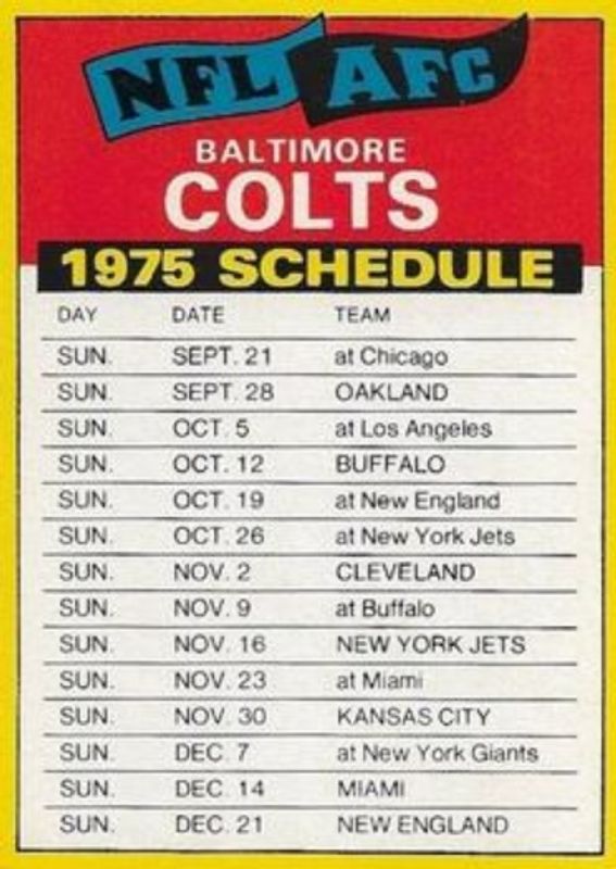 Baltimore Colts 1975 Topps Team Checklist RAW Price Guide