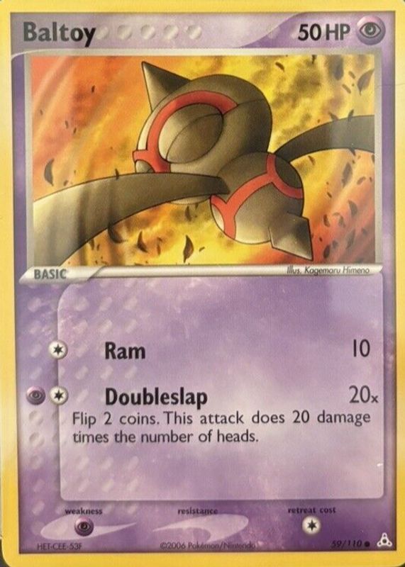 The Baltoy 2006 EX: Holon Phantoms #059/110 Base card in Raw TCG (Near Mint) condition has not changed in price in the last 30 days and was last sold for $1.50 .